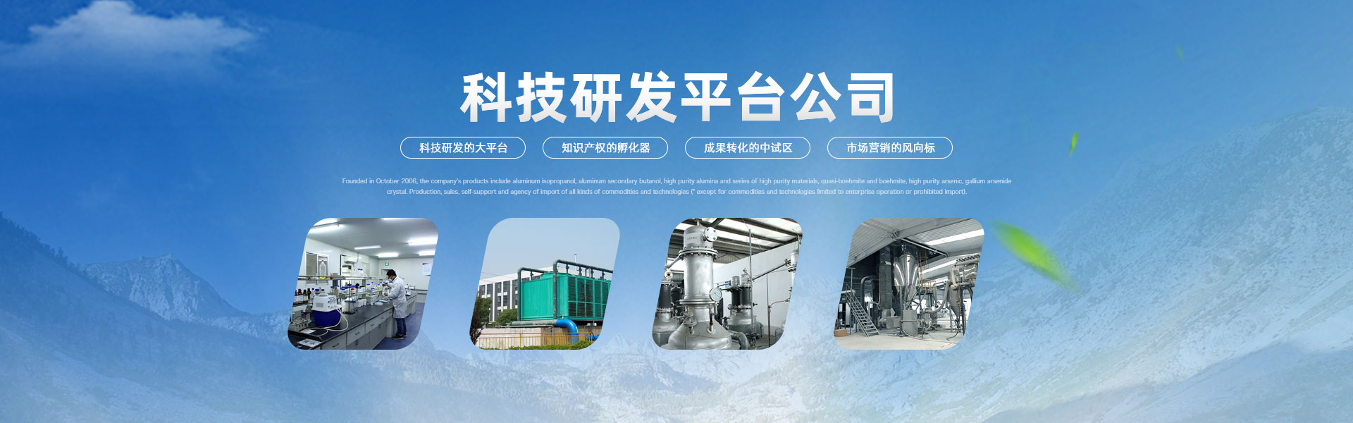 主打產品 異丙醇鋁,仲丁醇鋁,高純氧化鋁及系列高純材料,擬薄水鋁石以及鋁溶膠的生產、銷售,自營和代理各類商品及技術的進口業務(國家限定企業經營或禁止進口的商品合技術除外)(依法須經批準的項目,經相關部門批準后方可開展經營活動) Click me ?